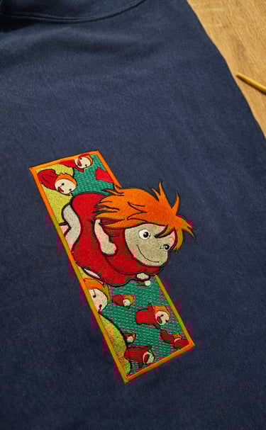 Des broderies précises et durables, réalisées sur place à Guérande, pour donner vie à vos idées textiles.